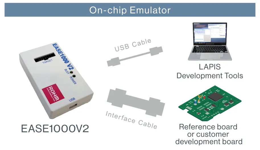 * EASE1000 V2 is compatible with microcontrollers equipped with LAPIS Technology 8-bit RISC processor and 16-bit RISC processor.