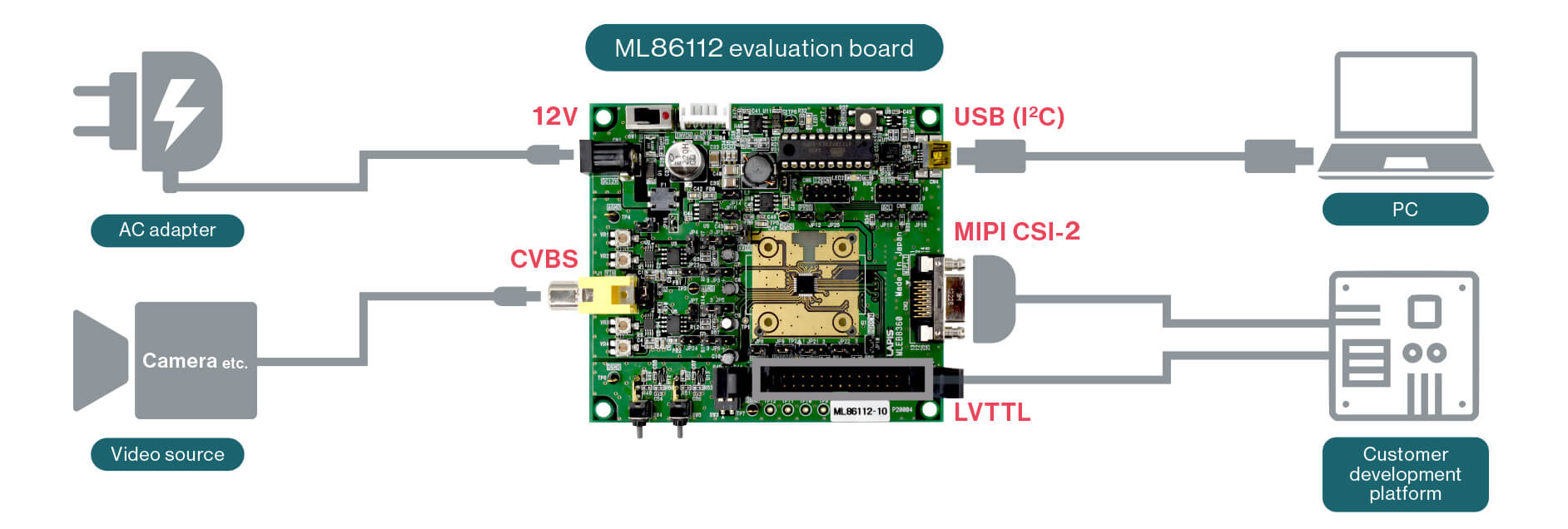 Standard interface "MIPI CSI-2 / LVTTL signal" can be supported Compact video decoder " ML86112 "