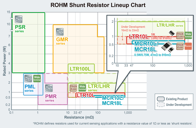 ROHM has recently developed wide terminal shunt resistors, LTR10L. They are optimized for a variety of applications in the automotive, industrial, and consumer sectors, while also strengthening its considerable lineup with two updated general-purpose MCR series shunt resistors (MCR10L and MCR18L).