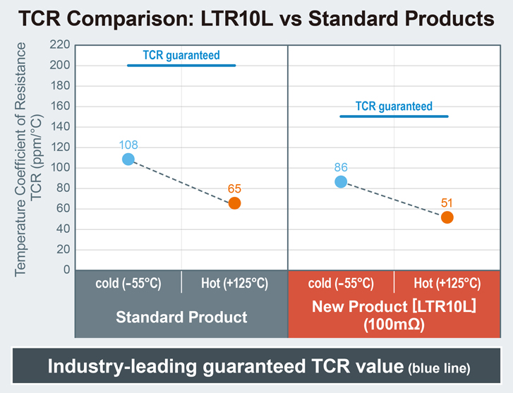 In recent years, high efficiency operation is required from the viewpoint of energy conservation – not only in battery-driven applications such as mobile devices and EVs, but in consumer and industrial equipment as well powered by electrical outlets. For high efficiency, it is important to accurately detect parameters such as current and voltage in order to operate devices optimally. This requires shunt resistors that combine high accuracy with high reliability current detection. At the same time, manufacturers of applications utilizing higher board densities are demanding even smaller shunt resistors. To meet these needs, the new LTR10L series delivers the industry's highest rated power and best-in-class temperature coefficient of resistance (TCR) in a compact 0508-size (0.5inch × 0.8inch) / 1220-size (1.25mm × 2.0mm) that contributes to both high reliability and greater miniaturization.