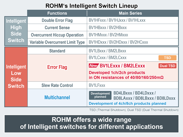ROHM’s New Compact Intelligent (Smart) Low Side Switches: Reduced Power Loss and Safer Operation Using Proprietary TDACC™ Circuit and Device Technology Replaces mechanical relays and MOSFETs fulfilling functional safety requirements in the automotive and industrial equipment applications