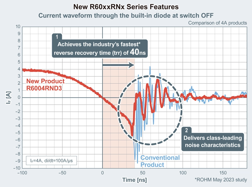 Noise Characteristics with the Industry’s Fastest* Reverse Recovery Time