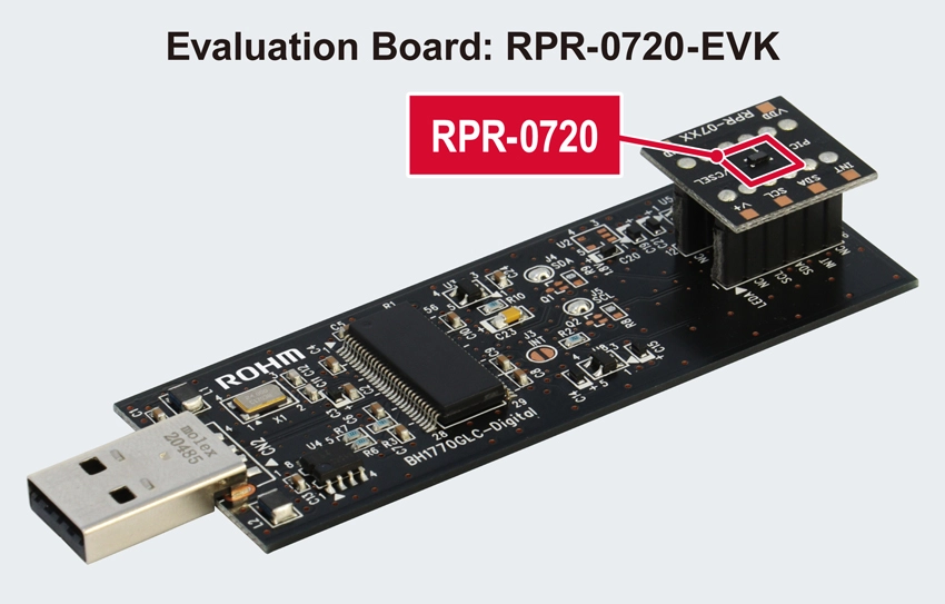 ROHM also offers an evaluation board for the compact RPR-0720 proximity sensor (RPR-0720-EVK).