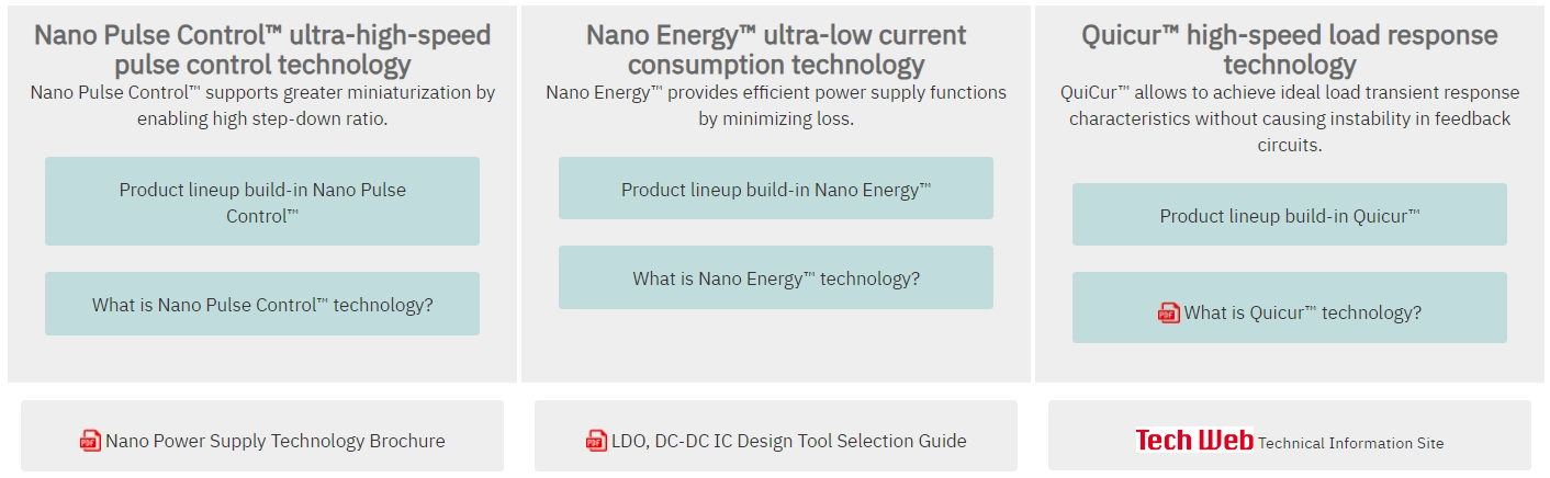 Our DC-DC Converter IC (https://www.rohm.com/products/power-management/switching-regulators) page became more user-friendly. We've added an introduction to our technical brands and the Featured Buck DC-DC Converter IC Finder. You can now easily view the lineup of products that ROHM proudly recommends.