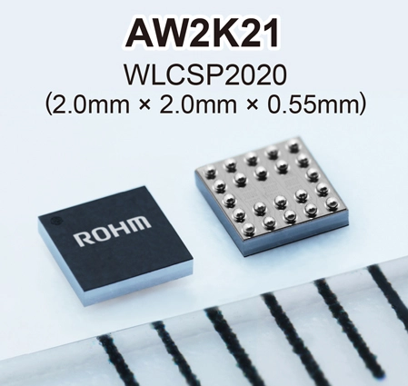 ROHM has developed a 30V N-channel MOSFET — AW2K21 — in a common-source configuration that achieves an industry-leading ON-resistance of 2.0mΩ (typ.) in a compact 2.0mm × 2.0mm package.