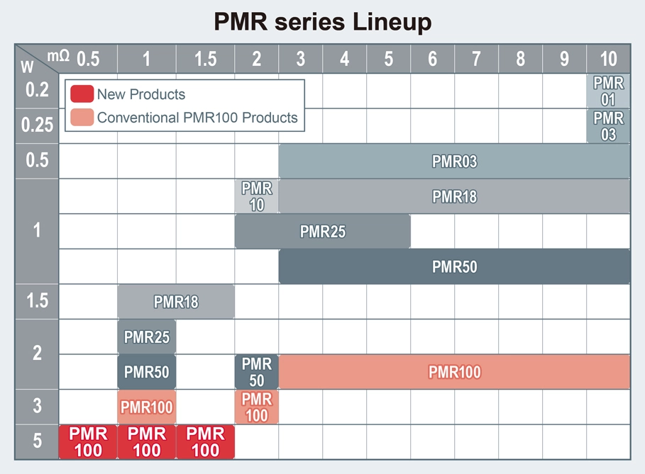 This series is now available in resistances from 1mΩ (PMR100HZP7FV1L00). Additional resistance values will be added as needed.