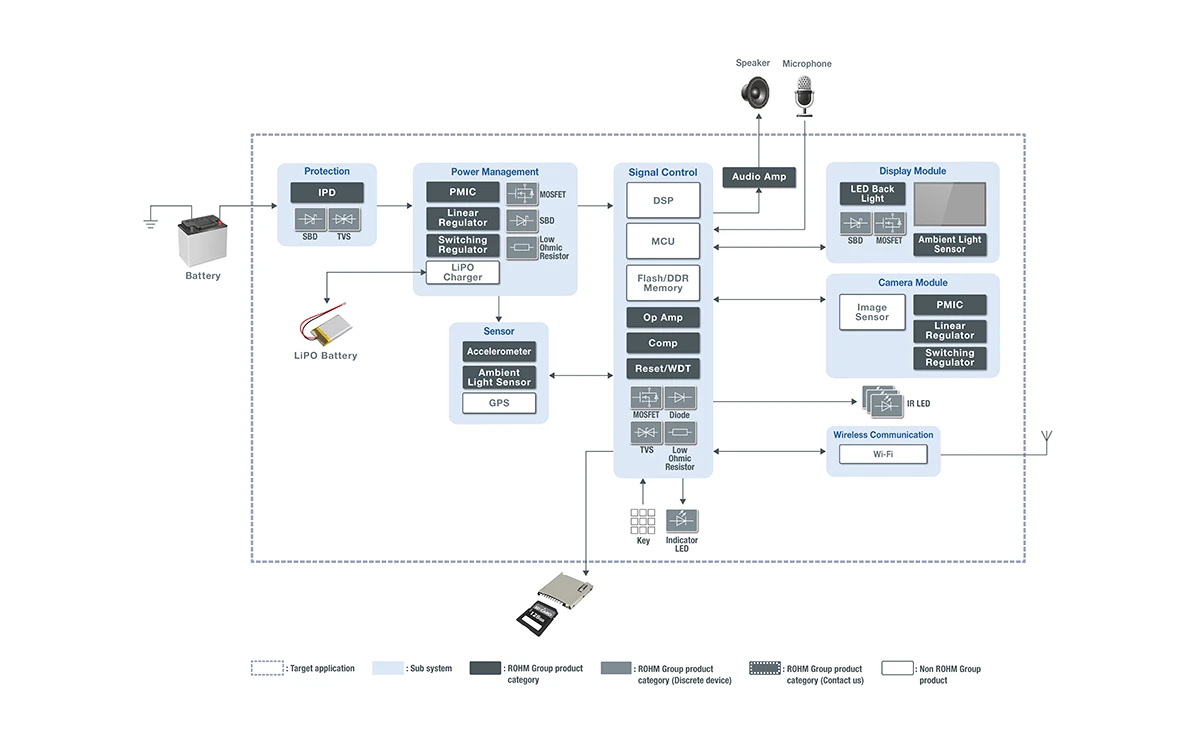 ROHM offers a broad lineup of compact, high-reliability general-purpose products, including ultra-compact small signal devices (MOSFETs and SBDs) in wettable flank packages, helping to achieve high-performance applications that prioritize safety and security.