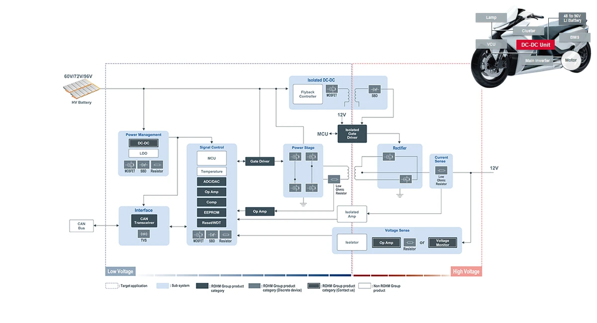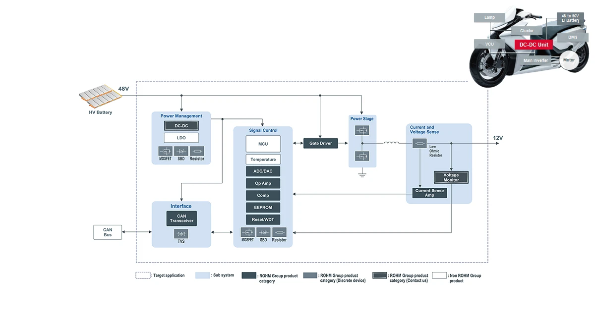 DC-DC converters play an important role in electric motorcycles by stepping down the high voltage from the battery to lower voltages required by the system.