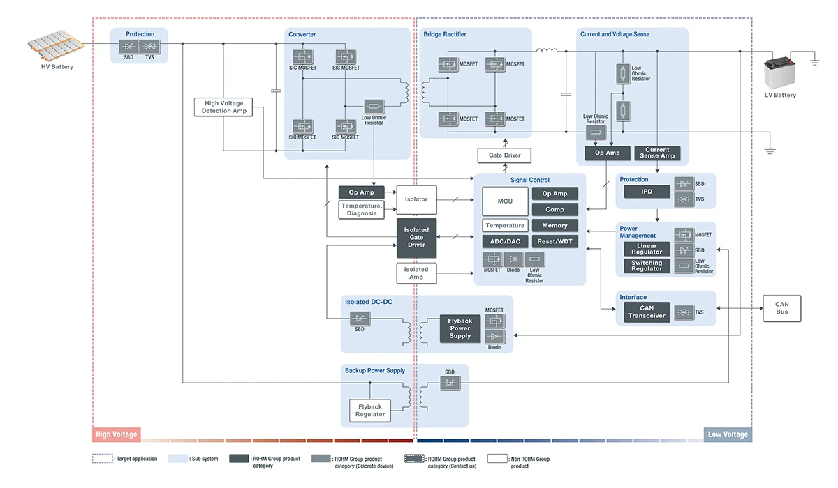 From SiC MOSFETs, isolated drivers, and control ICs to power supply ICs and shunt resistors, ROHM offers a wide range of products that allow users to configure high-efficiency, high-reliability automotive power supplies.