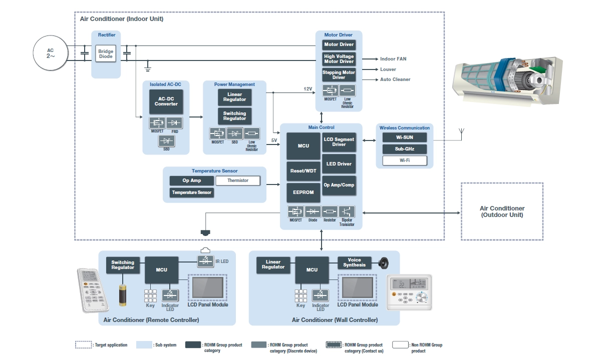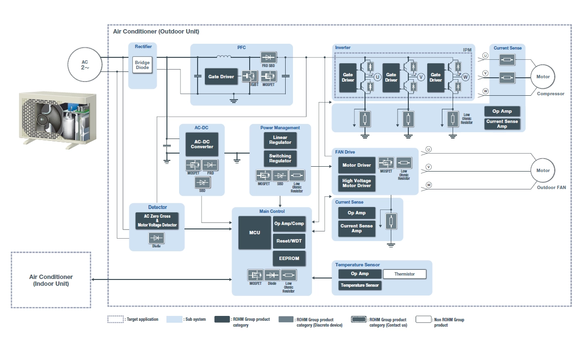 ROHM tackles these energy-saving challenges by proposing solutions centered on power devices for inverter circuits.