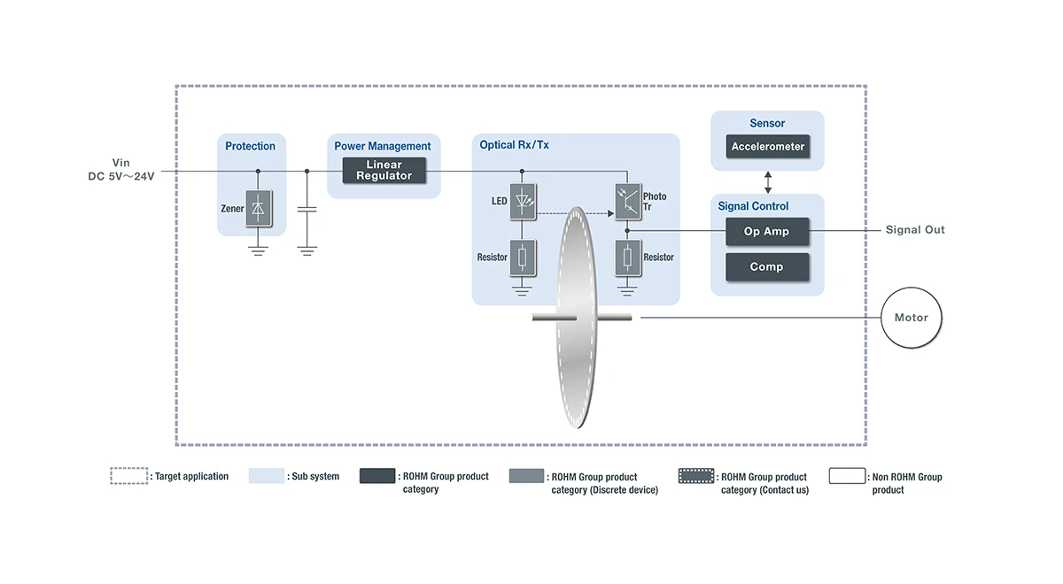 ROHM's photonic devices and operational amplifiers deliver a high-speed, low-latency solution for accurately detecting motor rotation, angle, and step position, contributing to greater efficiency in industrial automation equipment.