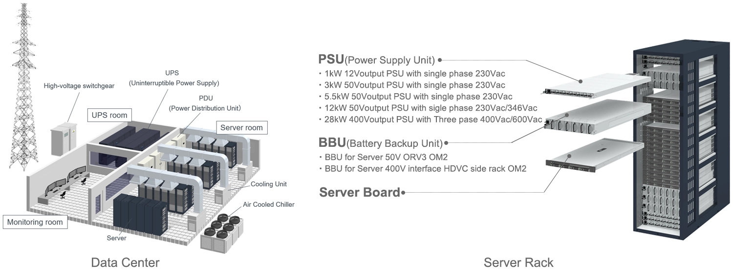 ROHM’s semiconductor technologies can achieve both energy saving and downsizing of customers’ server systems at a high level, while also enhancing reliability.