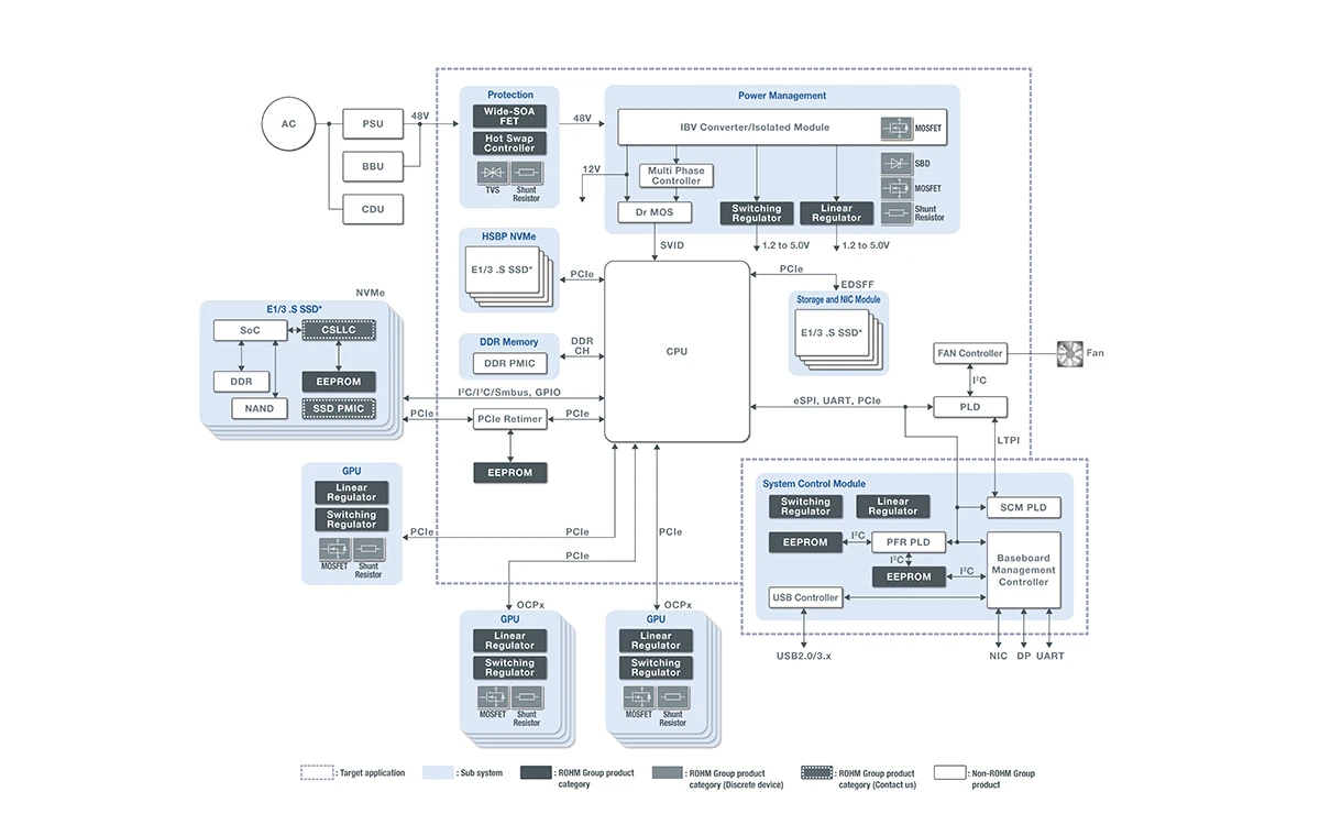 As a result of the popularization of generative AI and the acceleration of DX, modern servers are required to have unprecedented computing power, and corresponding increases in the power consumption must be addressed. To improve the power usage effectiveness (PUE) of data centers, there is an urgent need to shift from the traditional 12 V distributed power distribution architectures to 48 V centralized architectures, while also downsizing power supply units and improving their efficiency.