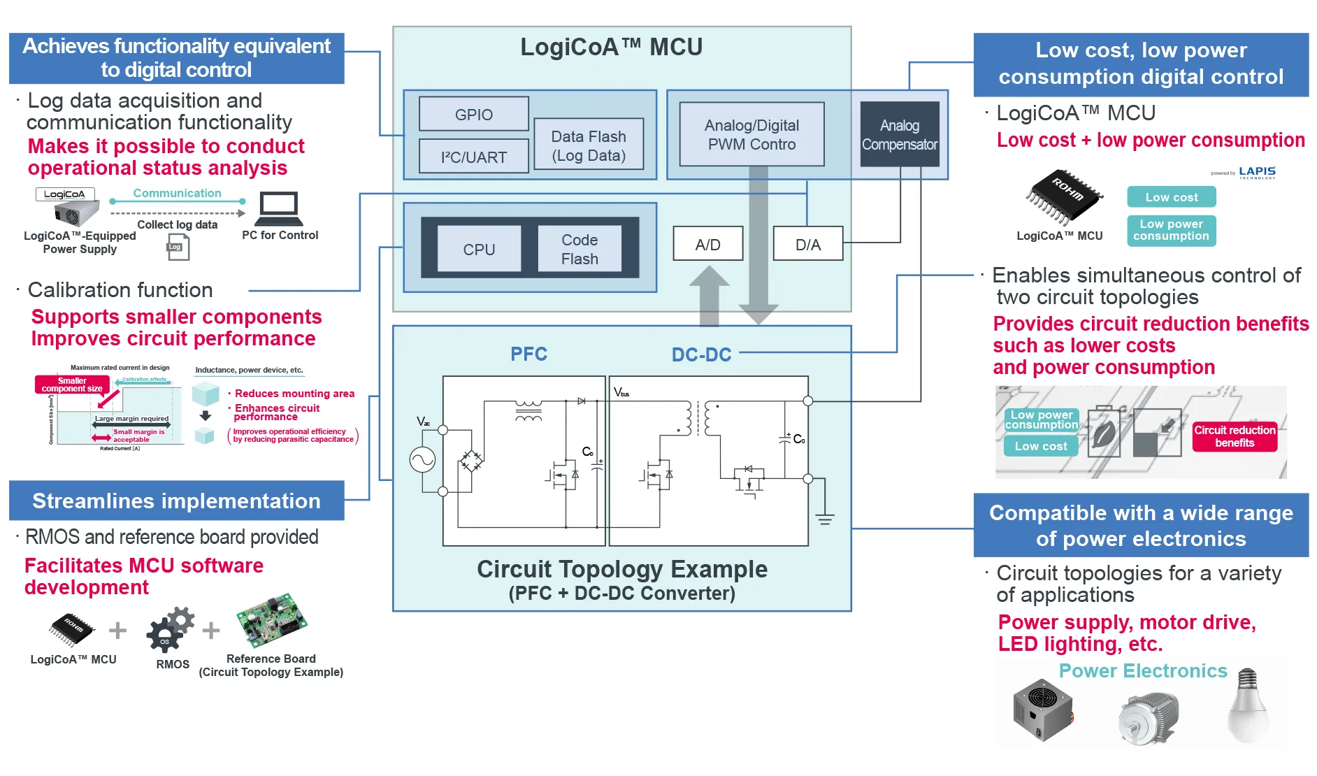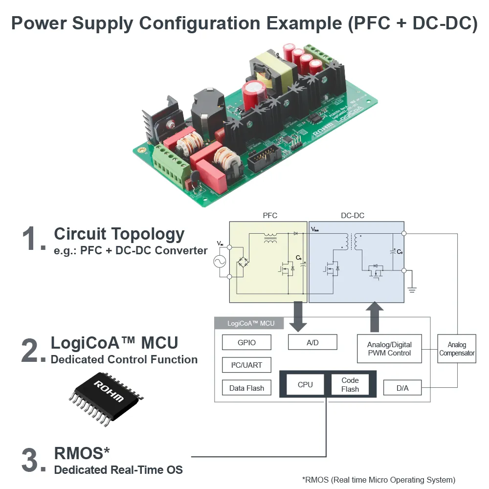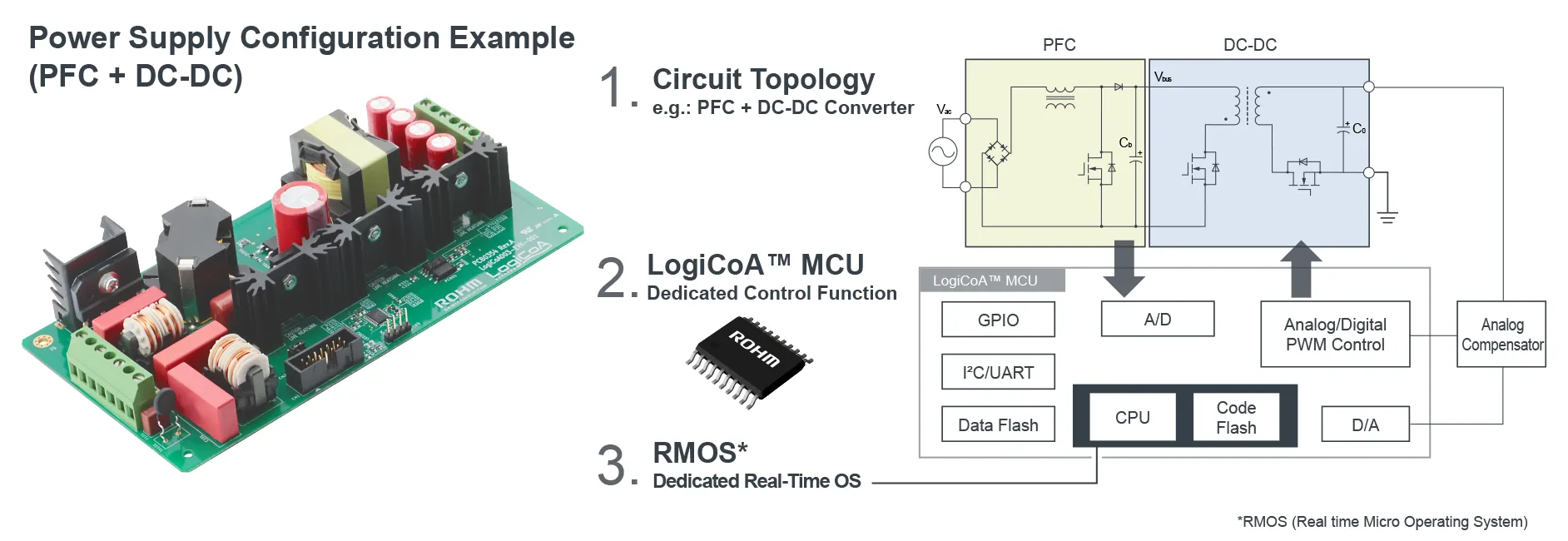 LogiCoA™ solutions not only include a core LogiCoA™ MCU, but other ROHM components as well that will vary depending on the power supply topology