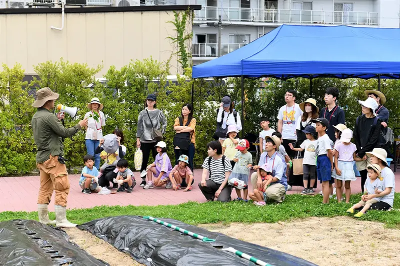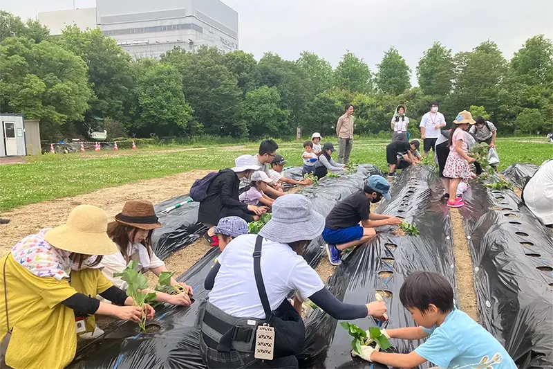 The purpose of this event was to allow employees and their families to experience nature in the biotope area and learn about ROHM's vision and the importance of ecosystem conservation in a fun way through hands-on farm work in the fields that nurture biodiversity.