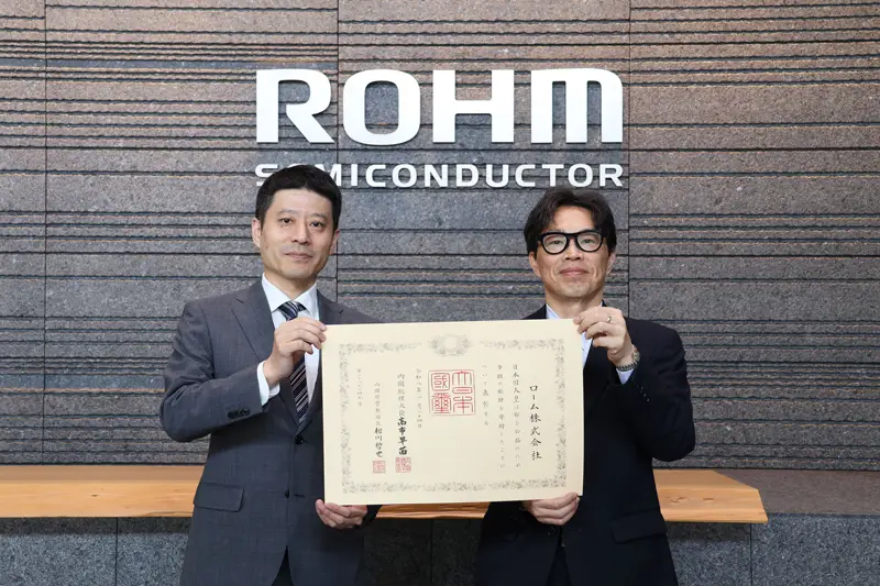 ROHM Co., Ltd. (“ROHM”) has been awarded the Medal with Dark Blue Ribbon in recognition of its support for initiatives aimed at enhancing the appeal of Shiga Prefectural Omi Fuji Karyoku Park.
