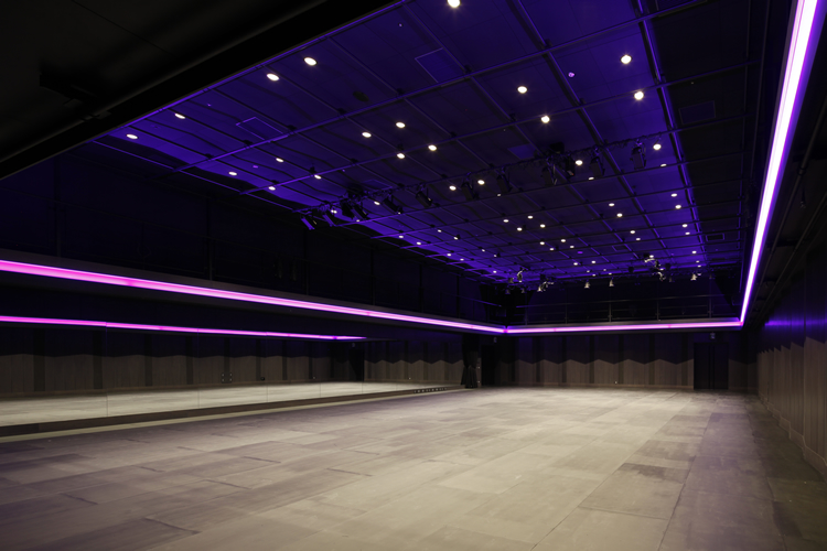 A multipurpose 716-seat hall designed for general theater, concerts, ceremonies, etc. It is possible to remove the entire floor and expand the stage by also removing the seats. Provides a flexible space for carrying out experimental trials.