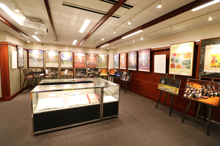 A facility that allows users to interact with music in its various forms, the salon includes a viewing function with a large screen for watching operas, orchestras, and other performances along with an exhibit area for showcasing music-related materials from concerts and seminars.